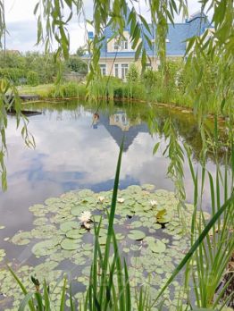 Участок 20 соток имеет правильную форму, огорожен, ухожен, установлены ворота открываются с пульта, выполнен ландшафтный дизайн, выполнено уличное освещение, дорожки и площадки есть свой декоративный пруд, есть на участке теплицы закрытые, можно сажать, в доме встроенный гараж для 2-х машин, есть закрытая летняя веранда- беседка.