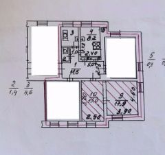 Общая площадь квартиры 98,1 кв.м., площадь продаваемых комнат по документам 17,9/15 кв.м., коридор 11,6 кв.м. (в нем есть отдельная встроенная кладовка на эти комнаты), кухня 8,2 кв.м (место около окна) и так же есть отдельная кладовка на кухне, с/у раздельный, потолки 3 м.
