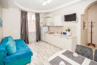 Студия комфорт-класса оснащена всем необходимым как для длительного проживания, так и на короткое пребывание.