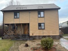На участке в 2021 году возведён каркасно-щитовой двухэтажный дом из качественных материалов площадью 112 кв.м., стены, полы и перекрытия утеплены по всему периметру, сделана ветро и влагозащита, отделка снаружи сайдингом. На первом этаже имеется просторная мебелизированная кухня, большая гостиная комната и совмещенный санузел, на втором этаже две большие комнаты, кабинет, две гардеробные и большая застекленная лоджия, имеется выход на чердачное помещение.
