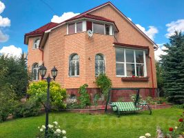Кирпичный дом 2012 года постройки, 260м2, 3 этажа, на участке 25 соток вблизи деревни Малые Семенычи (коттеджный поселок Лесное озеро) в Наро-Фоминском районе, 60 км от МКАД. Одинаковый километраж от Москвы по двум трассам: Киевскому и Минскому шоссе.