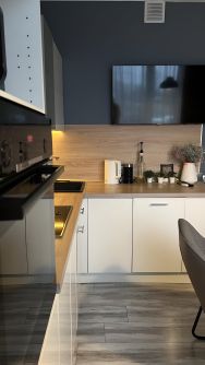 Кухня, со всей необходимой встроенной техникой,( варочная панель, духовка, посудомоечная машина, вытяжка), большая просторная светлая гостиная и столовая, спальня, санузел, хозяйственные комнаты, веранда теплая и холодная, летняя. Котельная, Подвал.