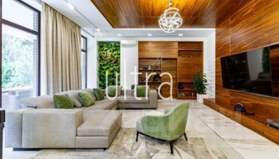 Планировочное решение: кухня-гостиная, мастер-спальня с отельной гардеробной и санузлом, две спальни с гардеробными, три санузла, холл с гардеробной, постирочная.