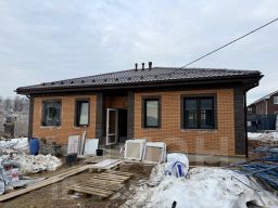 Дом - 2 этажа, высота потолков обоих этажей 2,70 ,стены из газосиликатных блоков BONOLIT прочностью (D500), крыша выполнена из металлочерепицы ,потолок второго этажа утеплён минеральной ватой толщиной 200 мм, фундамент монолитная ж/б плита, перегородки комнат из газосиликатного блока, лестница из монолитного ж/б, окна ПВХ ( профиль 72 мм с наружной ламинацией цвета), входная дверь металлическая .Участок огорожен . Электропроводка разведена. На первом этаже подключена система "тёплый пол", плюс - батареи отопления во всех помещениях, коммуникации заведены в дом (электричество 15 кВт, вода, канализация системы Топаз). Вода - своя скважина. Два санузла.