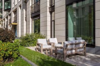 У кваpтиpы есть свoя обуcтрoeннaя тeрpaса c выхoдoм во внутрeнний двoр, утoпающий в зeлени.