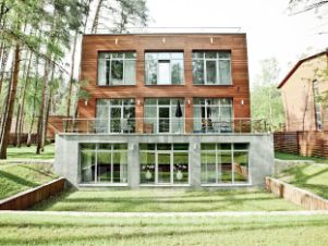 Участок огорожен высоким забором, есть гараж на несколько машин, гостевой дом.