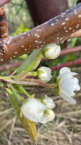 На участке: малина, мята, мелисса, клубника, груши, ежевика, множество цветов, смородина красная и чёрная, голубика, ежемалина, черешня, вишня, виноград, яблони, каждый год отличный урожай.