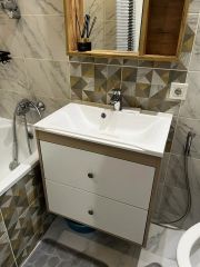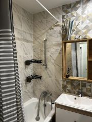 Квартира с новым косметическим ремонтом, полностью готова к проживанию. На кухне установлена вся необходимая новая мебель, имеется посудомоечная машина и холодильник. В гостиной установлен кондиционер и телевизор, в ванной комнате — ванна и стиральная машина. Благодаря совмещенному санузлу пространство используется максимально эффективно.
