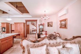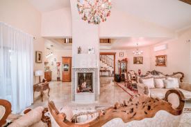 • Первый этаж: прихожая, огромная кухня-гостиная с выходом на террасу, обеденной зоной и лаунж-апартаментами с видом на горящий огонь из шикарного камина, просторный кабинет, санузел, бойлерная, а так же комната для стирки и сушки белья;