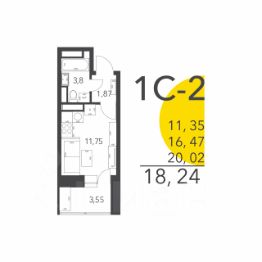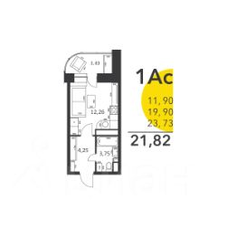 Монолитно-кирпичный дом комфорт-класса. Уютная квартира-студия 21,28 (23,19) м2. Особенность квартиры: выход окна на Восток, панорамный вид из окна во двор и на лес, прихожая 4,25 м2, кухня-гостиная 11,36 м2, ванная комната 3,75 м2, лоджия-кабинет 3,8 м2. Панорамные виды, окна в пол. План квартиры на этаже 1Ас.