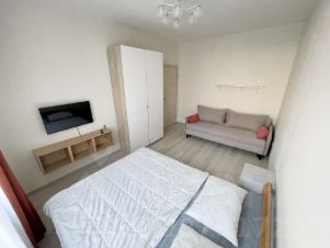 Студия оснащена всем необходимым: чайник, посуда, столовые приборы, постельное белье, тапочки, полотенца, приветственный набор гелей и шампуней стиральная машина и т.д.