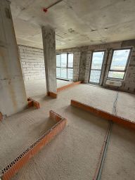 Квартира делалась для себя, светлая за счет 5 окон, с видом на деловой центр с кухни и гостевой, вид во двор из спальни.