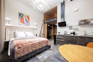 Апартамент оборудован большой 2-спальной кроватью 180*200, раздвижным 1.5-спальным диваном, и 2-местным спальным местом 160*200, расположенном на антресоли.