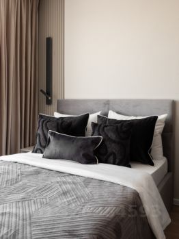 • Текстиль и декор: Тюль, портьеры, постельное белье, покрывала, декоративные подушки, плед, ковер, зеркала, дизайнерский свет (люстра, бра, настольная лампа).