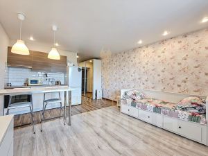 Чистая, приятная квартира - студия 27 кв.метров БЕЗ учета лоджии (!) в теплых оттенках ждет своего нового владельца. Квартира солнечная, теплая, просторная, правильной формы. Санузел совмещенный, с современной сантехникой и кафелем, что не может не радовать.