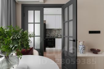 Кровать с высоким мягким изголовьем оборудована подъемным механизмом, позволяющим с удобством использовать место под кроватью в качестве дополнительной зоны хранения. Гардеробная позволит свободно разместить одежду и обувь, а также выделить хозяйственную зону для пылесоса, гладильной доски, чемоданов и других крупногабаритных предметов. Гостиная комната с удобным раскладным диваном. В каждой комнате установлен кондиционер. Интерьер построен на сочетании классических и современных элементов. Классические акцентные молдинги на стенах перекликаются с современными формами мебели, создавая уникальный и сбалансированный образ. Плавные линии, округлые формы и лаконичный декор сделали пространство мягким, уютным и живым. Продуманная подсветка — особенно за зеркалами — помогает акцентировать внимание на текстурах и зонах, создавая мягкую и уютную атмосферу. Ламинат с текстурой натурального дерева выложен единым полотном, что визуально увеличивает пространство и связывает весь интерьер в единую композицию.