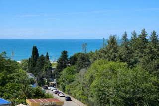 • Балкон выходит на тихую сторону — утром встаёт солнышко и поют птички, боковой вид на море