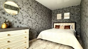 В доме сделан дизайнерский ремонт в классическом стиле, качественная мебель и техника. Везде теплые полы. На кухне посудомойка, кофемашина, любая посуда в достаточном количестве. Постельное белье, полотенца, чай и кофе, мыло, шампунь, гель для душа - предоставляются. Есть стиральная машина и гладильные принадлежности.