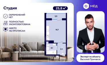 - Общая площадь - 24,9 кв.м