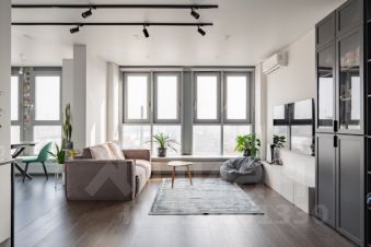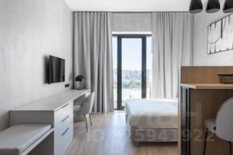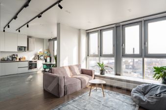 Студия с качественной чистовой отделкой: на полах плитка под дерево, стены окрашены, в санузлах отделка плиткой, установлена сантехника. Высота потолков - 3,2 метра, панорамное остекление.