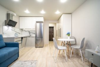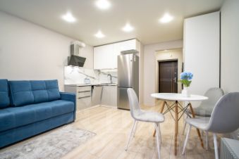В студии выполнен дизайнерский ремонт, а значит, вас порадует стильная и современная обстановка. В комнате и на кухне есть вся необходимая мебель. Из техники в вашем распоряжении: холодильник, телевизор со SMART-TV и стиральная машина, душевая кабина, шторы с эффектом Black out, раскладное кресло-диван.