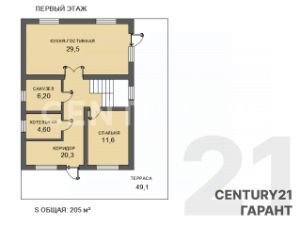 Дом стоит на ровном и сухом участке ИЖС 12 сот. Площадь дома 205.3м2 включая террасу 49.1 м2 на первом этаже и лоджию 15.4 м2 на 2-ом этаже с выходом из 2-х спальных комнат. Всего 5-ть спальных комнат, одна из которых расположена на 1-ом этаже 11.6 м2, можно использовать под кабинет, гостевую комнату или спальню.