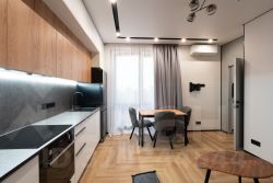 В Квартире никто не жил, отделка завершена. Дизайн выполнен в современном стиле.