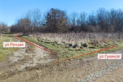 Участок угловой (Гуниной-Речная), расположен на окраине станицы, граничит с колхозным полем. До реки Ходзь 300 метров. В хорошую погоду видны горы.