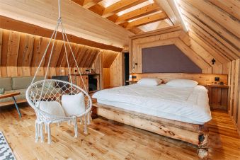 Спальня: кровать двуспальная, прикроватные тумбы, комод, дамский столик.