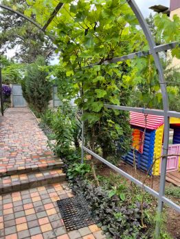 Можно пользоваться мангалом, парковка автомобиля бесплатно (заранее бронировать). Находится на территории дачного кооператива "Весна". На территории расположен ещё один домик. На первый свой вход и на второй этаж свой вход. До моря расстояние пешком 20 минут.
