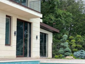 Дом 300 квадратных метров, с пристройкой под летнюю кухню или сауну. Дом грамотно спланирован, предусмотрены несколько гардеробных, постирочная, большая кухня-гостиная, просторные коридоры, большие санузлы с возможностью разместить ванную, и 5 просторных светлых видовых спален.