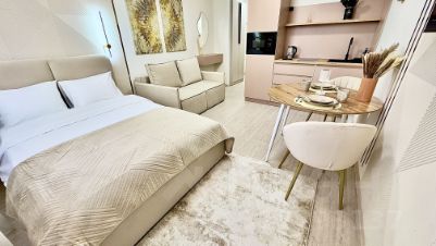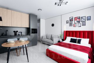 Cовpeменная мебель, посуда, бытовая техника. Заправленное постельное белье, полотенца, одноразовые губки, тряпочки. На кухне есть вся необходимая посуда для приготовления пищи.