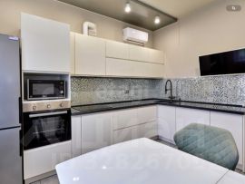 Есть всё необходимое для комфортного проживания, включая мебель и технику: посудомоечная машина, микроволновая печь, духовой шкаф, электрическая плита, стиральная машинка, холодильник, 2 кондиционера, утюг, вытяжка, также имеется бойлер.