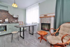 В квартире новая качественная дизайнерская отделка. Металлическая дверь, окна-стеклопакеты, на полах плитка с электроподогревом, на стенах декоративная штукатурка, обои. Есть зеркальные шкафы-купе, стильная кухонная мебель, холодильник, СВЧ-печь, духовка, электроплита, воздушный фильтр, вытяжка, обеденный стол с табуретами. Раскладной диван 160см. Электрокамин, ТВ, интернет, сушилка для белья. Санузел совмещенный, есть стиральная машина, накопительный водонагреватель, угловая ванна, умывальник с зеркалом, унитаз, шкаф с полками. Санузел снабжен поручнями для удобства маломобильных граждан.