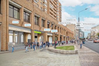 Объект расположен в шаговой доступности от станций метро Тверская, Пушкинская и Чеховская — 5 минут пешком. Интенсивный пешеходный трафик. Развитая инфраструктура, крупный жилой и деловой район. витрины на Большой Палашевский пер