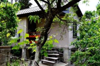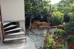 Гостевой домик для 3 человек с террасой. В домике 3 спальных места (2 односпальные кровати, 1 диван-кровать), тумбочки, вешалка для одежды, обеденный уголок (холодильник, электроплита, микроволновая печь, электрочайник, набор посуды, столовые приборы),душ, туалет. Полотенца, фен, утюг предоставляются по запросу.