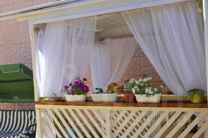 Сдаётся: отдельно стоящий Коттедж-студио -25 м.кв. ((2х местный на втором этаже над гаражом, можно с ребенком, есть возможность установить дополнительное место (раскладное кресло) за дополнительную плату). Расположен в цветущем, ухоженном, закрытом от внешней среды частном дворе с мраморно-гранитным полом, в исторической старой части города Евпатории, район Малый Иерусалим. Рядом находится: музей и кафе Караимские Кенасы -1 мин.пешком, мечеть, синагога и собор -3 мин, рынок, гипермаркеты и магазины -3 мин, набережная, море и аттракционы -3 мин. В домике имеется: санузлы, душ, х/г вода, кухня, газовая поверхность, стиральная машинка, раскладной угловой диван, дополнительное раскладное кресло, прихожая, плоский телевизор, холодильник, микроволновка, кондиционер, утюг, ручной пылесос, фен, обеденный стол со стульями, посуда со столовыми принадлежностями, Wi-Fi, балкон, на котором: столик с табуретками, сушилка для белья. На территории имеется: мангал и качели общие. Возле дома имеются машиноместа, они находятся под видеонаблюдением как и дворик.
