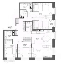5-комнатная квартира 180 м² без отделки, высота потолков - 3,2 м, с панорамными видами на Тверскую и "Москва-Сити", в премиальном комплексе.