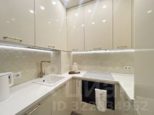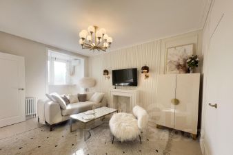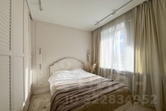 Большая кухня-гостиная с кухонным гарнитуром и современной бытовой техникой, большой комфортный угловой диван, стол, стулья, тумбочка под телевизор. Из кухни есть выход на лоджию. Две изолированные комнаты: 16 и 14 метров. В спальне большая кровать, туалетный столик. Окна выходят во двор, вид на лес. КУ летом: 5000 зимой: 8000 примерно.