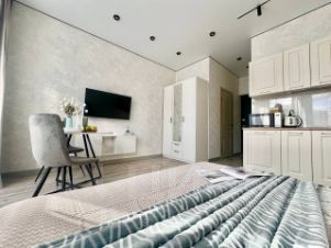 - Полноценная кухня (электроплита, холодильник, микроволновка, чайник)
