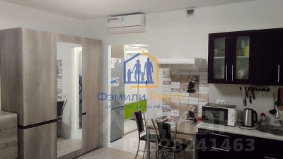 Коммуникации: электрика, сантехника и теплый пол.Установлена система отопления и радиаторы. На кухне в полу идут провода к кухонному островку.