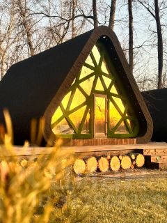 В домах на первом этаже комната с двуспальной кроватью, санузел с душевой кабиной, кухня, зал с удобным, раскладывающимся диваном, на втором этаже двуспальная кровать. Телевидение smаrt tv, WI-FI, чайник, микроволновка, холодильник, фен, посуда на 6 персон.