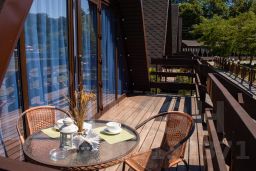 Для комфортного проживания гостей предусмотрены современные коттеджи, выполненные в эко-стиле, которые гармонично вписываются в окружающий ландшафт. Каждый коттедж оснащён всей необходимой бытовой техникой, включая холодильник, плиту и микроволновую печь, а также кухонными принадлежностями, что позволяет готовить любимые блюда прямо на месте. Кроме того, вы сможете оставаться на связи с миром благодаря доступу к Интернету и телевидению. Возле каждого коттеджа оборудована просторная беседка с удобными столами и скамьями, а также стационарный мангал, что создаёт идеальные условия для вечерних посиделок с друзьями и семьёй.