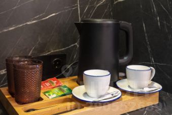 Санузлы: 1 этаж туалет с душевой кабиной, 2 этаж туалет с ванной. Уборка номера ежедневно. Смена белья раз в 4 дня. Комплектация номера: телевизор в гостиной, сплит система в каждой комнате и гостиных, стиральная машина, утюг, гладильная доска, микроволновая печь, чайник, посуда, холодильник, фен, комплект полотенец, одно универсальное мыльное средство в диспенсере.