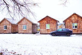 Домики стоят отдельно друг от друга и сделаны из ЭКО-материалов. В каждом домике есть туалет, душ с горячей водой, телевизор, холодильник, микроволновка, чайник, кондиционер.