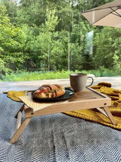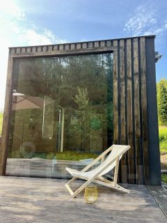 Просторная спальня: Светлая и уютная, с большой двуспальной кроватью, мягким постельным бельем и подушками, обеспечивающими вам полноценный отдых. В оформлении использованы натуральные материалы, что придает комнате теплую и расслабляющую атмосферу. Панорамное окно. Терраса с грилем. Гостиная зона: В домике предусмотрена зона гостиной с мягкими стульчиками, где можно расслабиться пообедать или почитать книгу. Большие окна делают эту зону особенно светлой и уютной в дневное время. Полностью оборудованная кухня с современной техникой и посудой. Ванная комната: Стильная и просторная ванная комната с душевой кабиной, качественными косметическими средствами и полотенцами.
