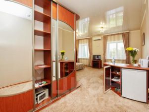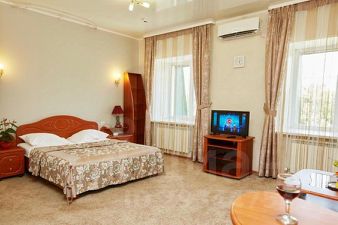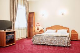 - "Семейный" номер с двухспальной кроватью, 10 м2. В комнате - холодильник, телевизор, двухспальная кровать, шкаф.