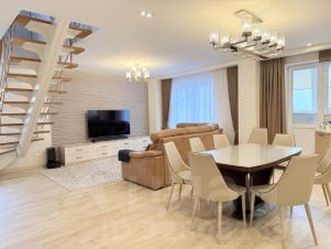 Предлагаю Вашему вниманию отличное предложение крупногабаритную, просторную, светлую квартиру в двух уровнях, общей площадью 172.3 кв.м. - жилое пространство, отвечающее современным требованиям комфортного проживания. В концепцию предлагаемого объекта входит: единое пространство, включающее в себя просторную гостиную, столовую и кухню, также четыре изолированные спальни, три сан.узла, четыре обустроенные лоджии. Предлагаемая квартира полностью оборудован необходимой бытовой и климатической техникой, частично меблирована и готова для проживания!!! Этот дизайн проект очень сильно отличается не только своей масштабностью, но и оригинальностью. Если попытаться описать в нескольких словах дизайн проект интерьера данной квартиры, то можно сказать, что дизайн выполнен в современном стиле, красивый интерьер предлагаемой квартиры предполагает удобство для жизни, практичность в эксплуатации и эстетика, основанная на дизайнерских трендах настоящего времени в совокупности с грамотной планировкой квартиры, выполненной с учетом максимального функционального использования жилого пространства, отвечают современным требованиям настоящего времени. Аккуратная отделка в нейтральной цветовой гамме создает фон, где в равной степени можно сосредоточиться на отдыхе, общении или работе. Планировка квартиры: - Предусмотрены четыре изолированные спальни, оборудованные встроенными шкафами для хранения вещей, в каждой комнате установлена сплит-система. - Гостиная образует единое пространство с кухонной и столовой зоной. Освещение в помещении зонировано и предполагает непосредственное использование для различных случаев. - Кухня полностью меблирована. Совершенно современные фасады (механизм закрывания с доводчиками) скрывают внутри вместительные системы хранения, выездные панели, выдвижные корзины, кухонный гарнитур оборудован высококачественной встроенной бытовой техникой Neff. Бытовая техника Neff считается эталоном встраиваемой кухонной техники. Она славится безупречным качеством, инновациями и надежностью, ориентированной на функциональность и долговечность. - Просторные сан.узелы расположены на каждом уровне квартиры. Установлено качественное сантехническое оборудование. Выполнен современный монтаж системы водоснабжения квартиры. Установлен настенный накопительный электрический водонагреватель Ariston серии Tесн Inox. В квартире установлены пластиковые окна из профиля Schuco, оснащенные собственной системой фурнитуры Sсhuco Variotec, которая долговечна и соответствует самым высоким запросам потребителей. Фурнитура позволяет произвести до 20 000 циклов открываний. В квартире в зоне кухни, гостиной, коридора, а также на лоджиях установлены системы теплого электрического пола. Предлагаемая квартира расположена в современном жилом комплексе ЖК На Клубной, где комфорт и безопасность сочетаются с удобством городской жизни. Проект включает в себя пять корпусов высотой до 16 этажей, все они уже введены в эксплуатацию.