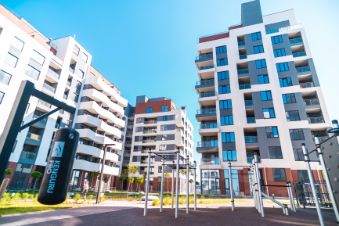 • Приватные и безопасные внутренние дворы с комфортными беседками и променадной площадью, украшенной арт-объектами.