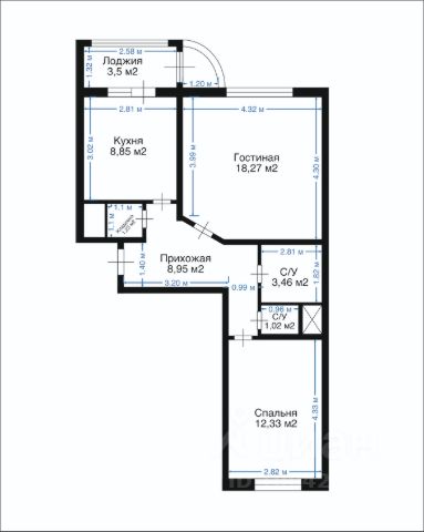 Общая площадь 32 м2. 3/9 этаж дома кирпичного дома.